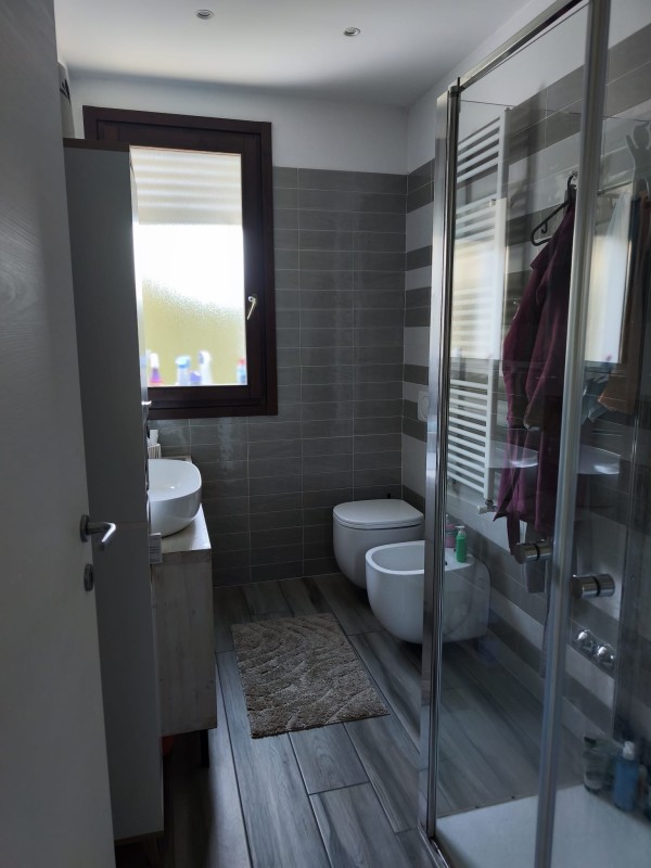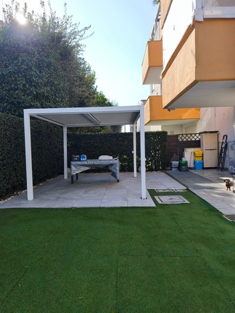 Luminoso appartamento di 70 mc al piano terra con giardino privato di 140 mq zona Via Cilla quartiere San Biagio composto da soggiorno con angolo cottura, camera matrimoniale, camera singola e bagno finestrato. Tapparelle blindate motorizzate in tute le stanze, split aria condizionata in tutte le camere. Giardino con pergola bioclimatica in alluminio. Completano la proprietà un garage da 15 mc e una cantina.Classificazione energetica